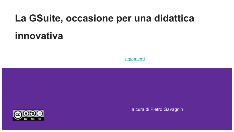 a cura di Pietro Gavagnin La GSuite, occasione per una didattica innovativa argomenti